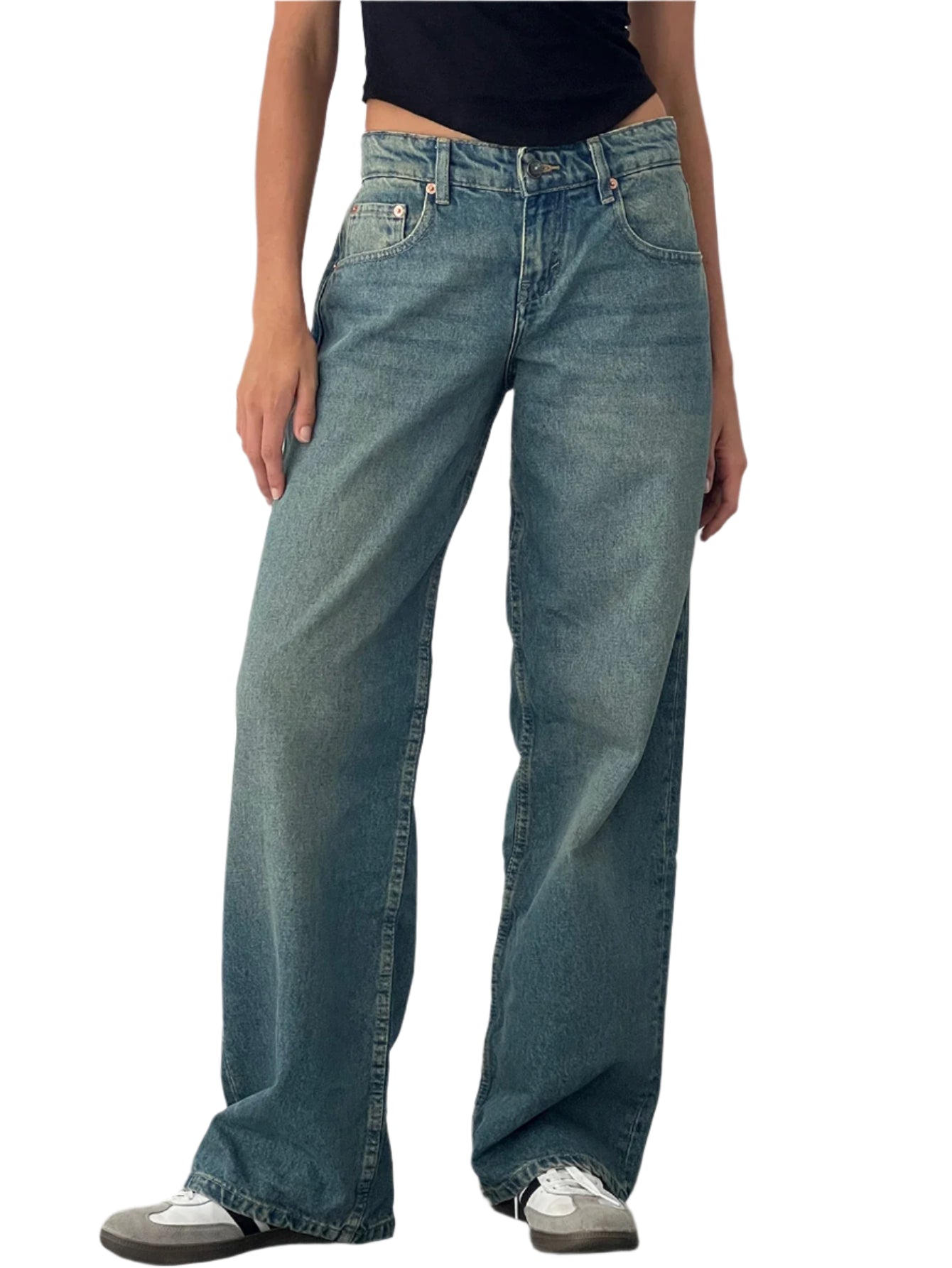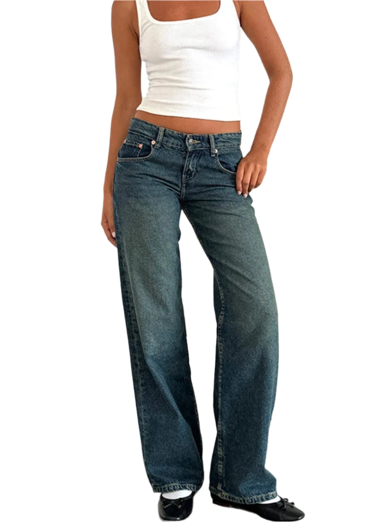 ג'ינס באגי כחול בגזרה גבוהה לנשים סגנון streetwear