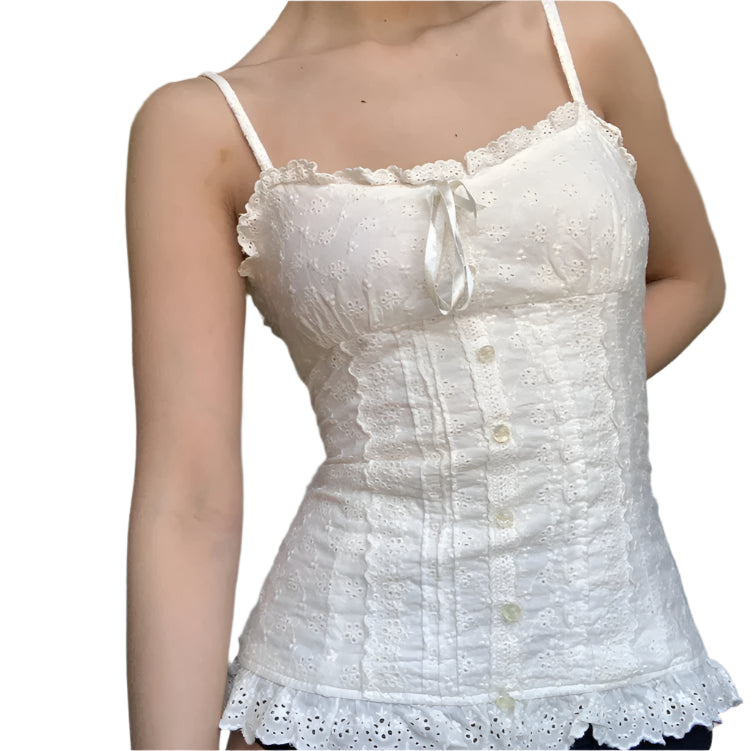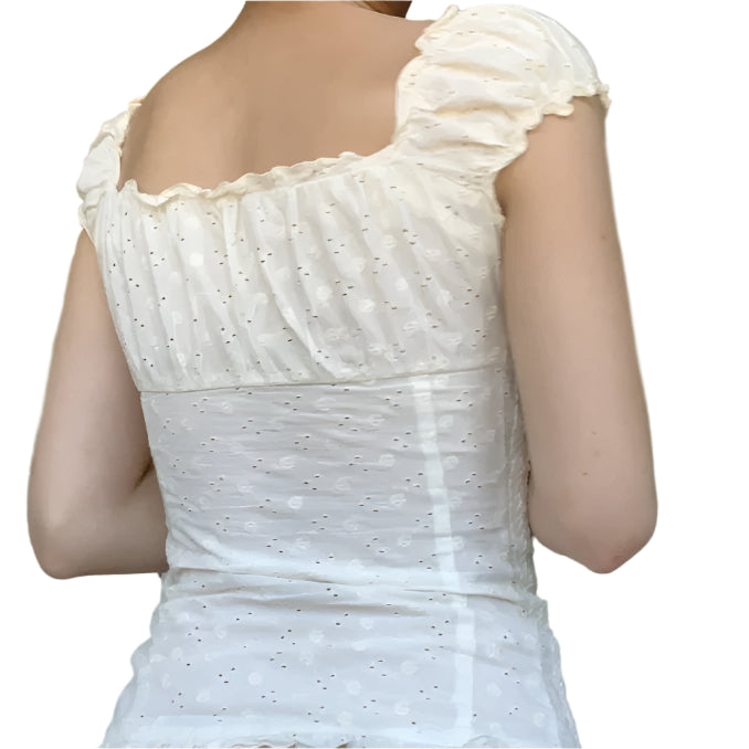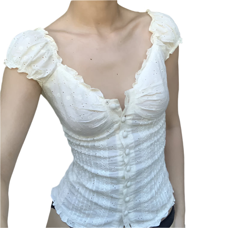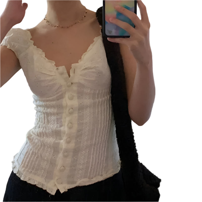 חולצת קרופ לבנה בסגנון וינטג' צרפתי עם טאץ' פייתי מהניינטיז. 🌸