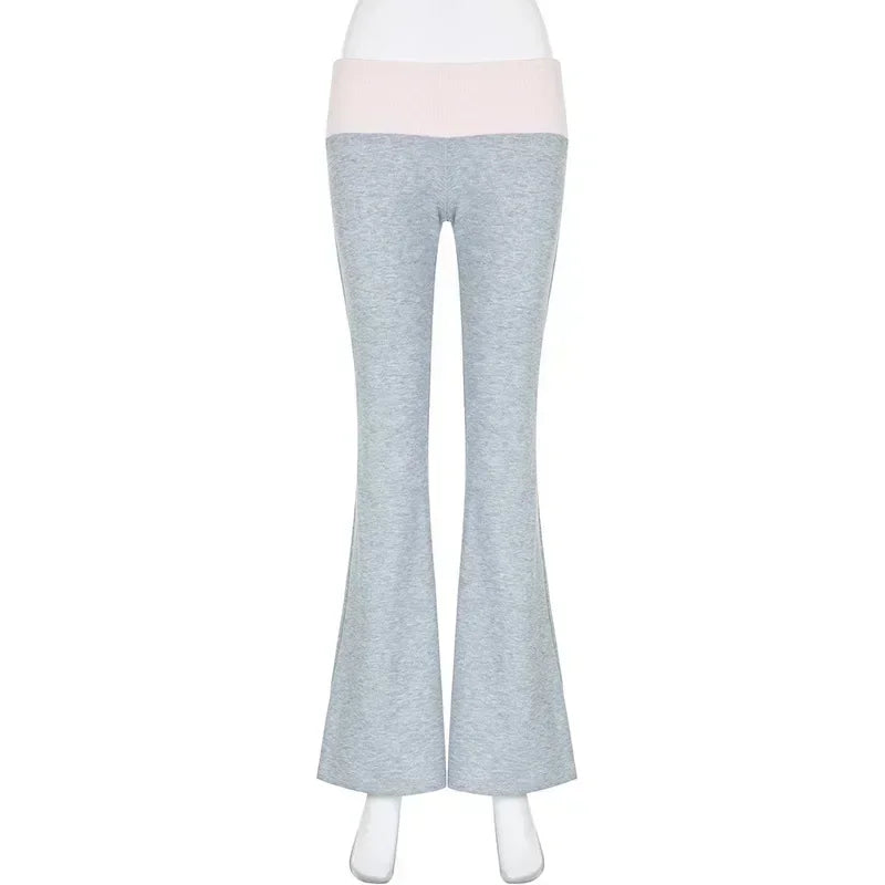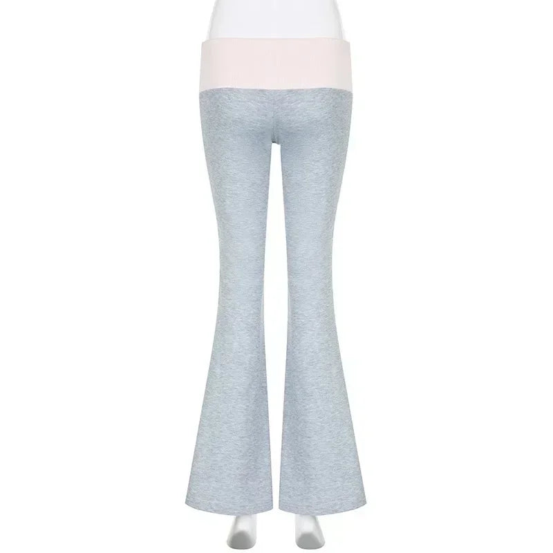 מכנסי פלאר מחטבים לנשים בגוון אפור עם פאצ'ים קונטרסטיים
