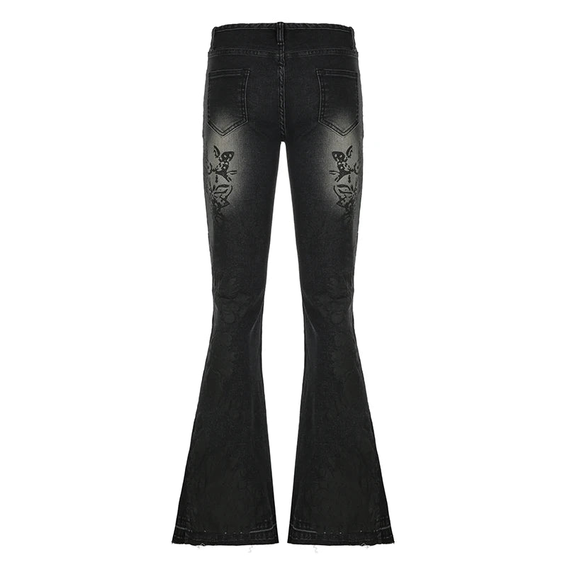 ג'ינס Y2K עם הדפס פרחים רטרו
