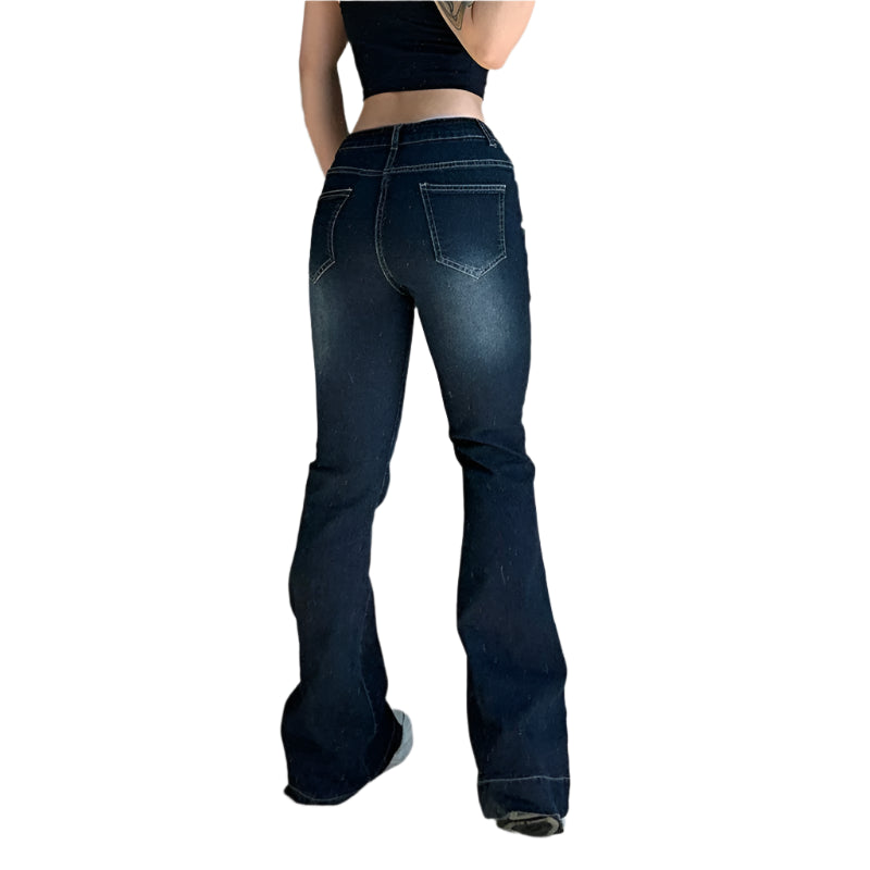 ג'ינס כחול כהה Y2K בסגנון וינטג'
