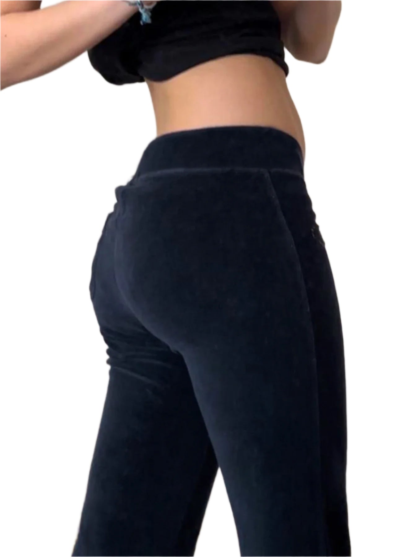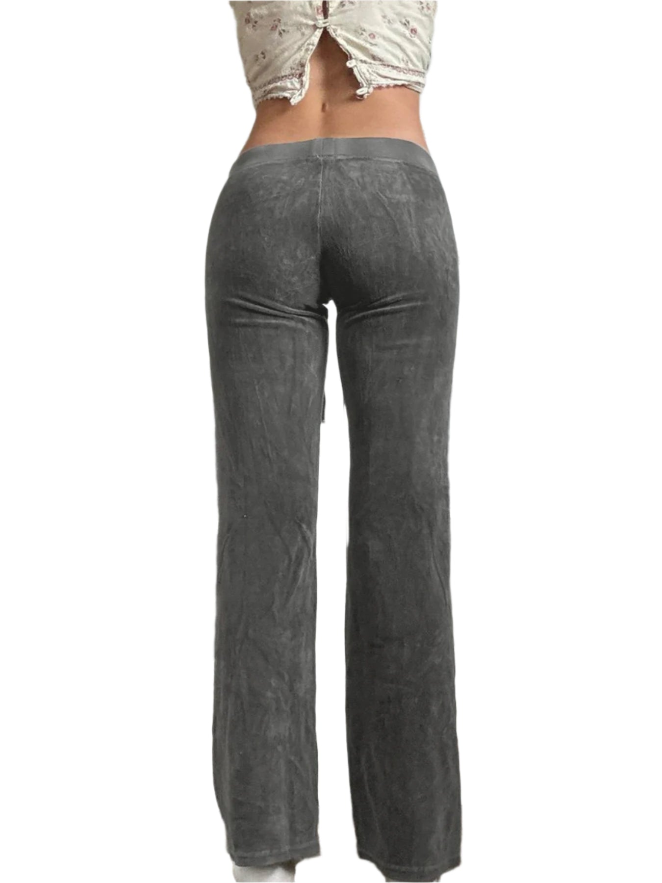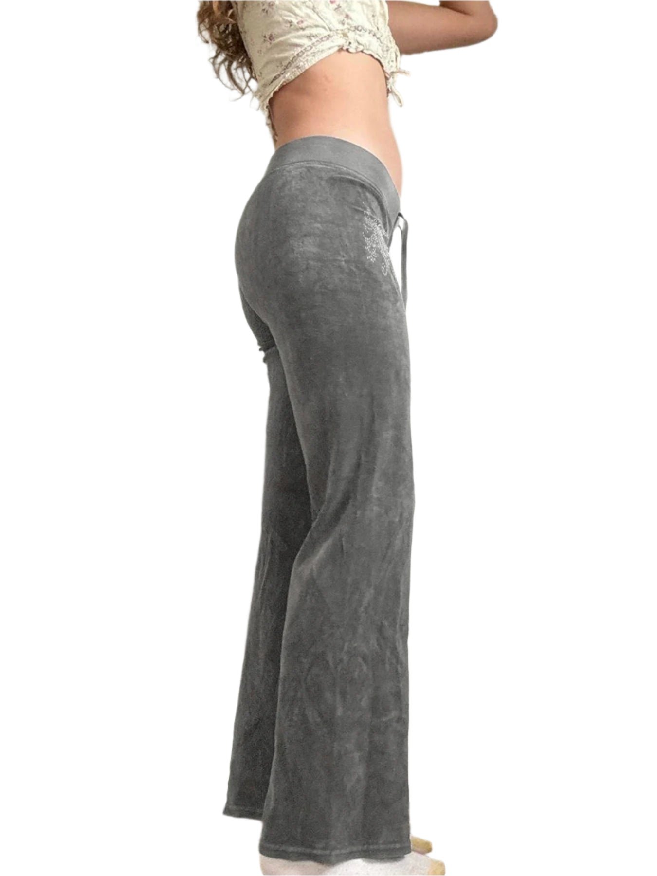 מכנסיים מתרחבים רטרו Y2K עם אבני חן וקשירה