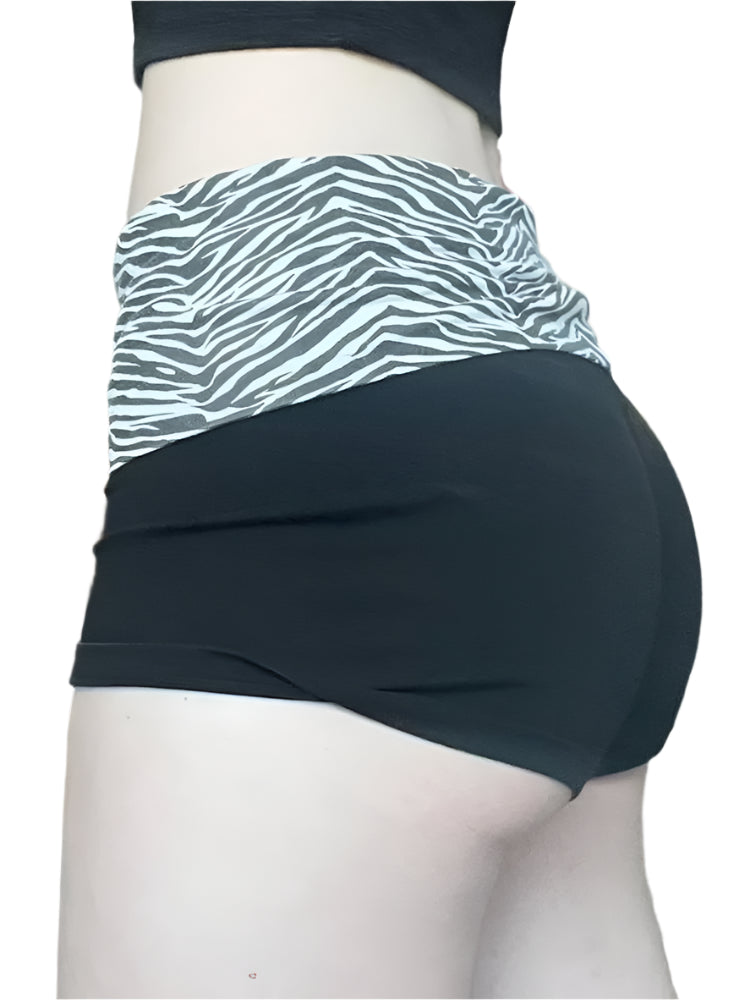 שורטס גזרה נמוכה וסופר מחמיאה, בד רך ונושם עם הדפס זברה פאשן, וסטייל שמשלב Beachwear עם Streetwear עכשווי.
