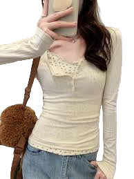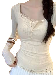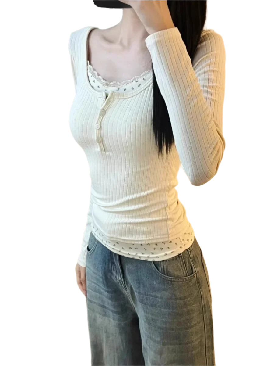 טופ וינטג' עם תחרה ושרוולים ארוכים