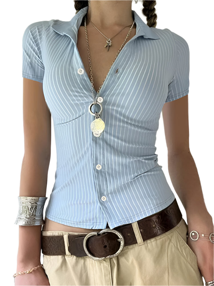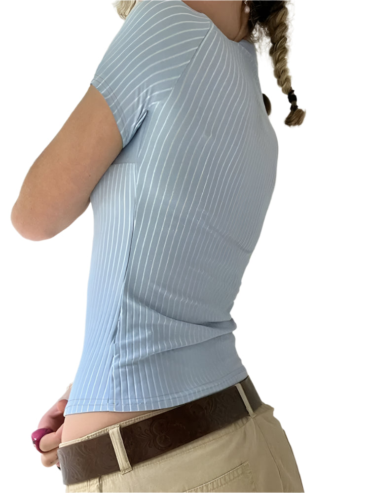 חולצת פסים כחולה עם שרוולים קצרים לנשים בסגנון y2k