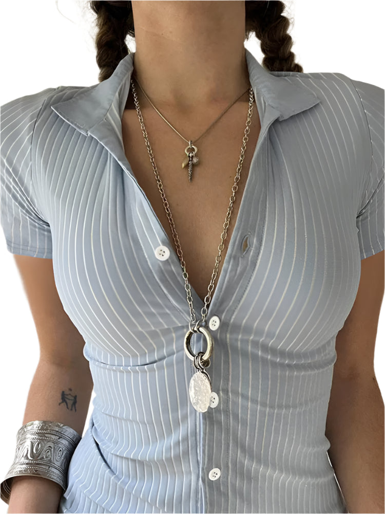 חולצת פסים כחול-לבן – קלאסית עם טאצ’ טרנדי.