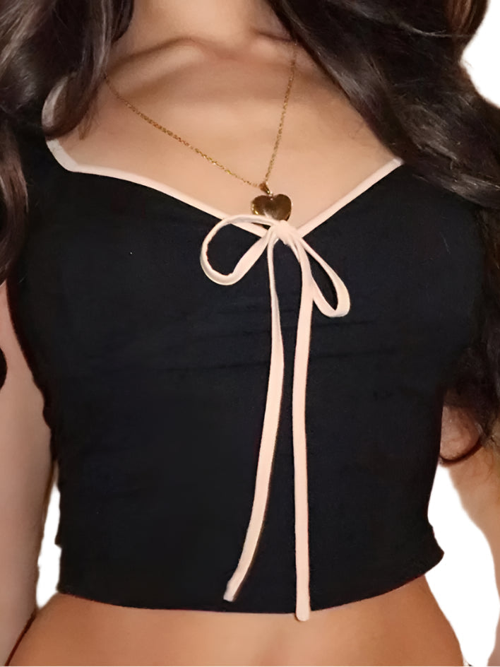 חולצת קרופ קצרה בסגנון Y2K קלאסי, עם פפיון מתוק בחזית שמוסיף טאץ' נשי ומיוחד. 🎀